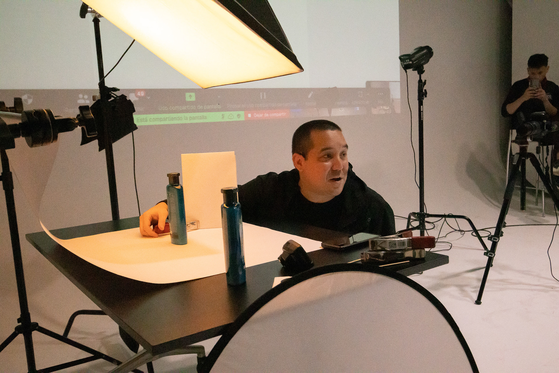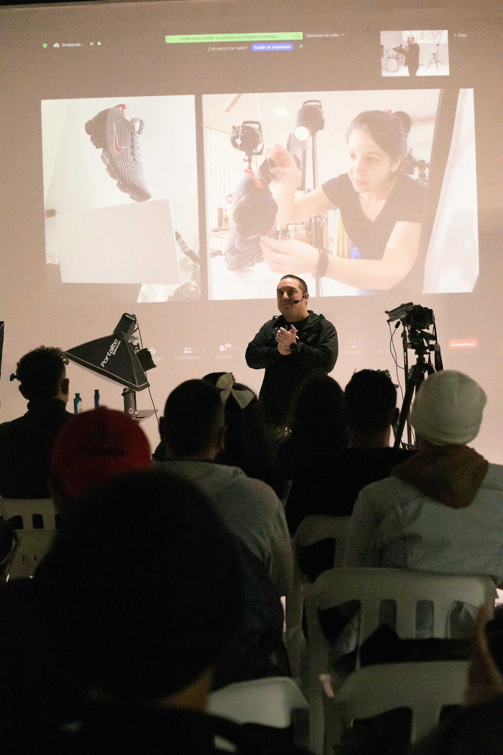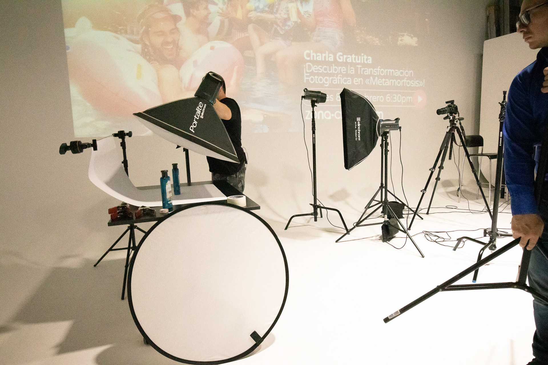 En adición a la charla también compartimos un shooting de fotografía de productos en vivo, donde pudimos probar algunas luces de la marca suiza y algunos accesorios Manfrotto como lo es su Pro-Scrim.