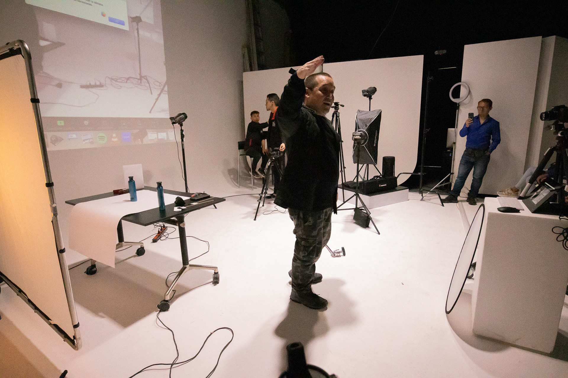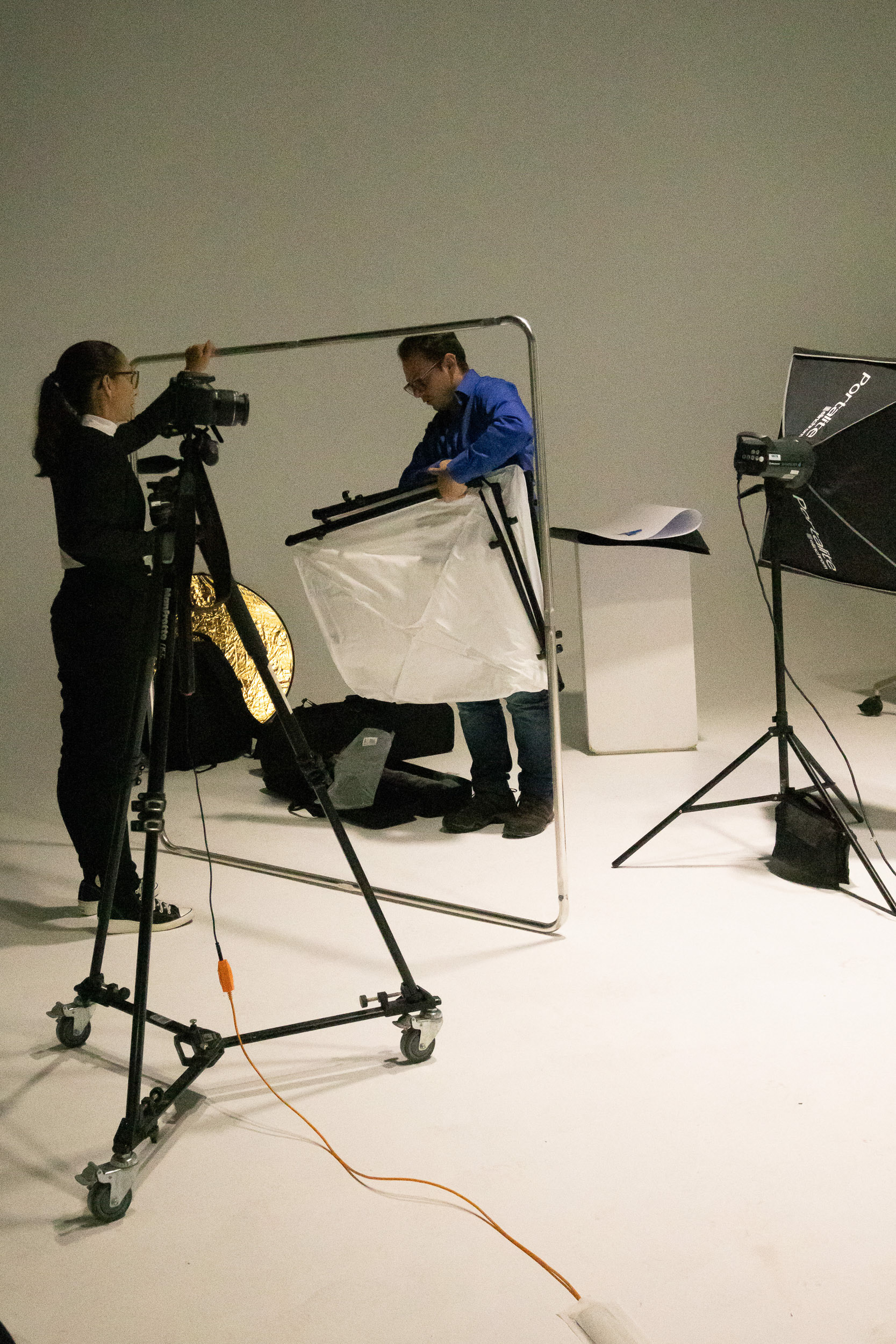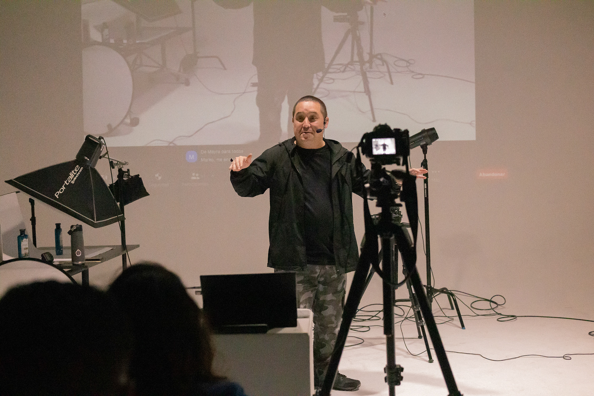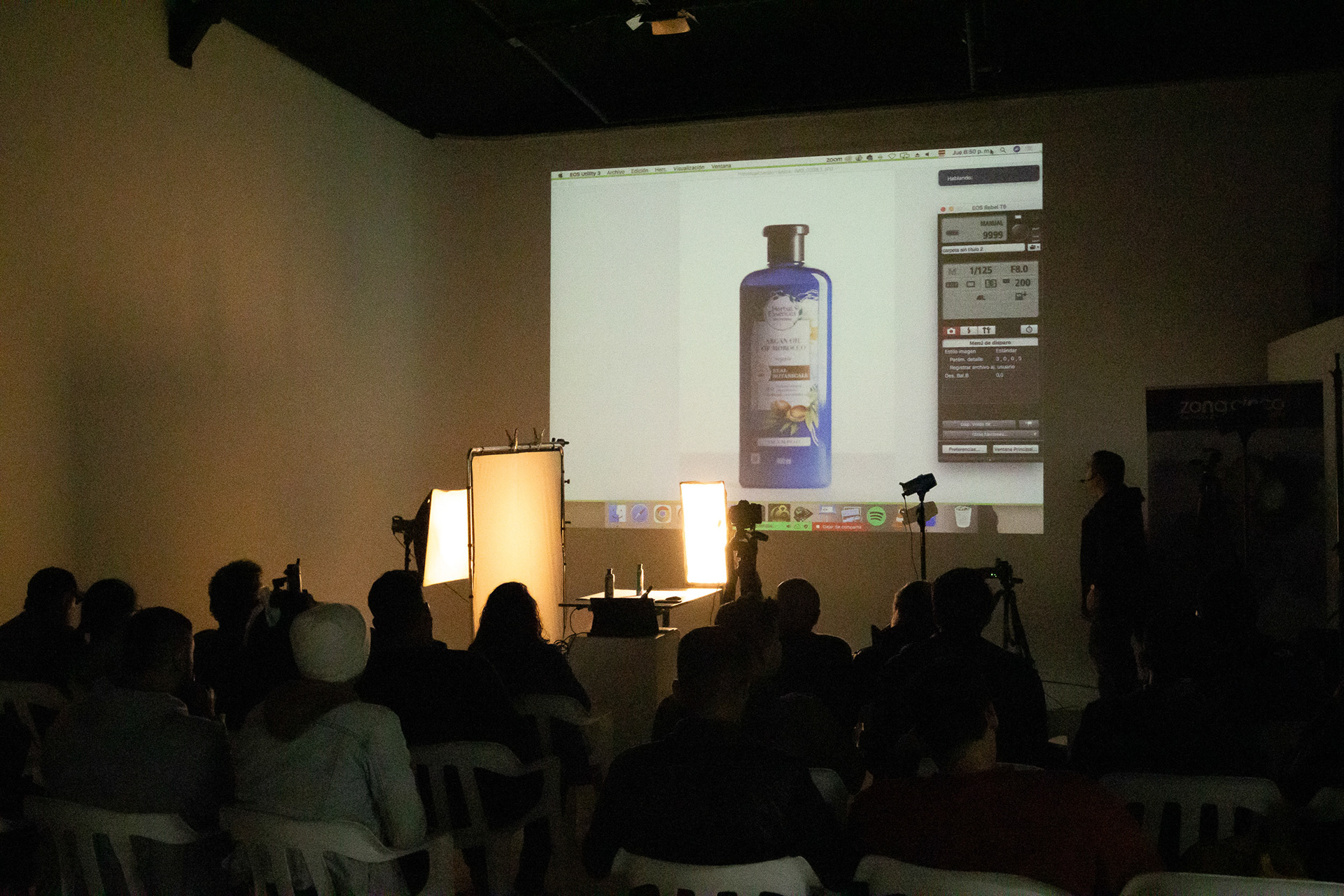 En adición a la charla también compartimos un shooting de fotografía de productos en vivo, donde pudimos probar algunas luces de la marca suiza y algunos accesorios Manfrotto como lo es su Pro-Scrim.